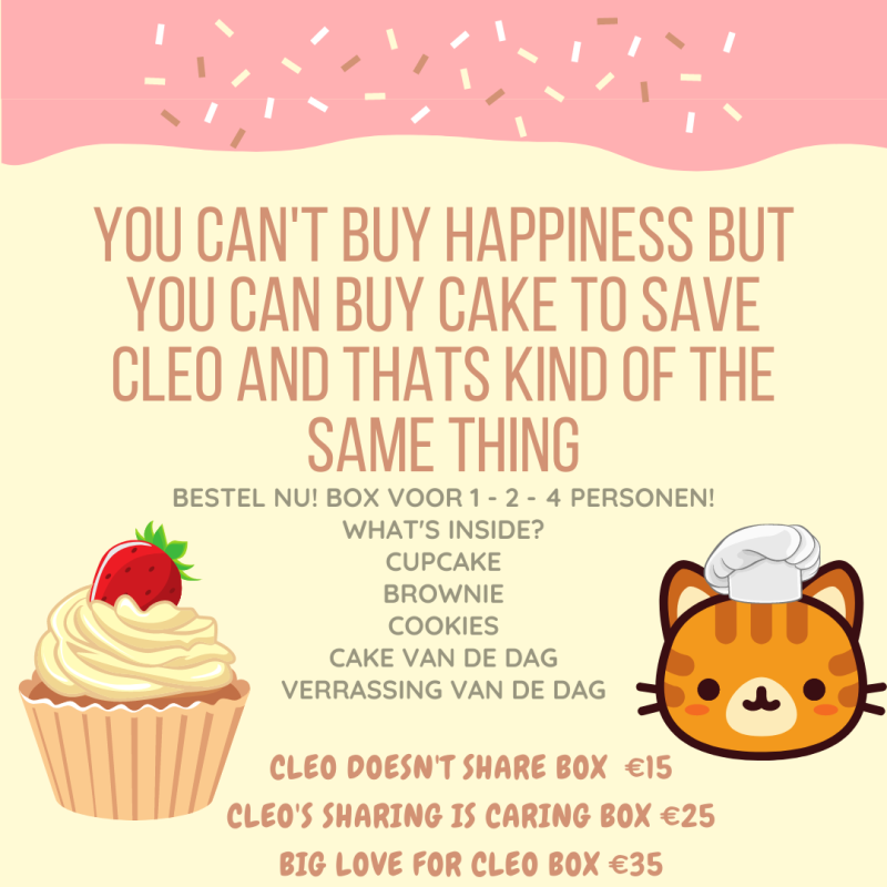 Indien er om welke reden dan ook geld over is, dan zal dit gedoneerd worden aan een goed doel dat zich inzet voor katten.